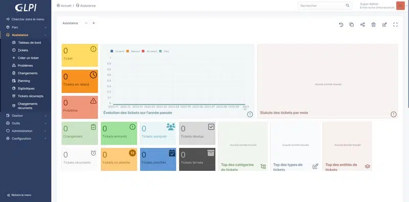 Centralisez vos équipements, tickets et interventions avec GLPI, la solution open source de gestion informatique.